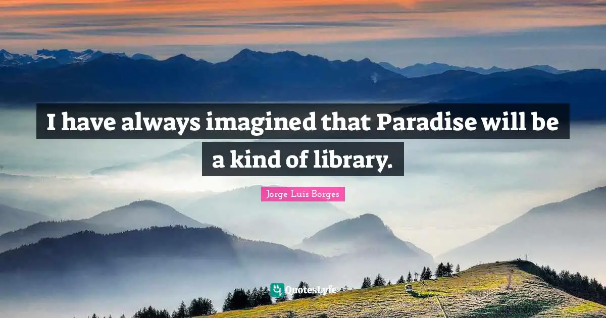 I have always imagined that paradise will be a kind of library. Friday 5 April 2013. I have always imagined that Paradise will be a kind of library Jorge Luis Borges. Paradise is a Library Join 44 other followers.